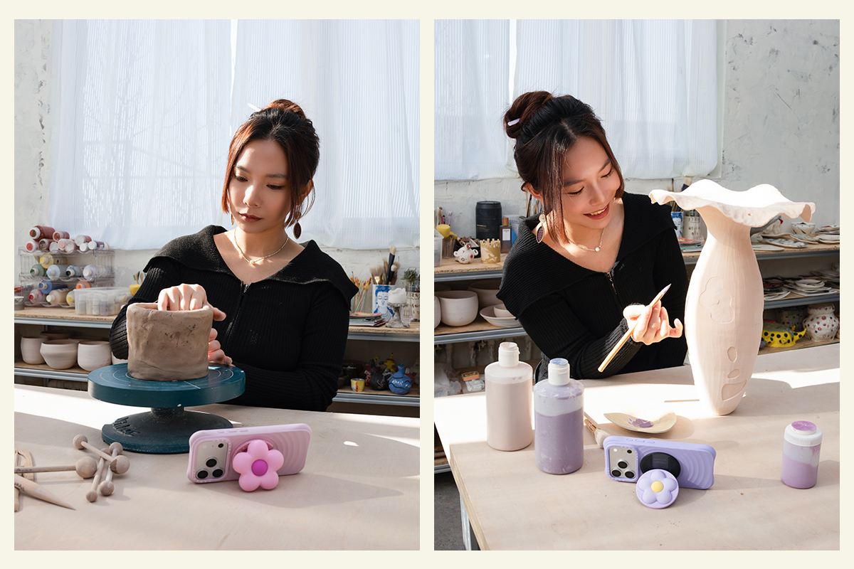 这份默契也延伸到了CASETiFY与其共同创作的陶艺作品 《花漾绽放》之中 ,作品从波漾手机壳全新配色的柔美设计中获得启发,以花朵柔和漾开的姿态,呼应生命自在绽放的节奏,通过陶土这一媒介,细腻诠释女性温柔而坚定的内在力量。